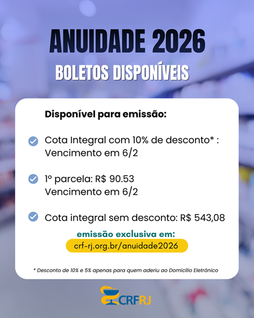 Já estão disponíveis os boletos para emissão da anuidade 2026