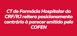 A Câmara Técnica de Farmácia Hospitalar, em defesa da classe farmacêutica, vem a público apoiar o Conselho Regional de Farmácia de Rio de Janeiro e o Conselho Federal de Farmácia, diante da publicação do Parecer n° 145/2018, de autoria da Conselheira Federal de Enfermagem, Irene do Carmo Alves Ferreira.