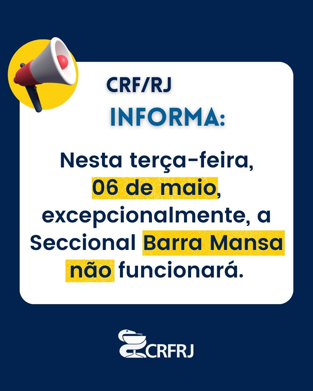 Excepcionalmente hoje, a Seccional Barra Mansa não funcionará Nesta terça-feira, 06 de maio, excepcionalmente, a Seccional Barra Mansa não funcionará.