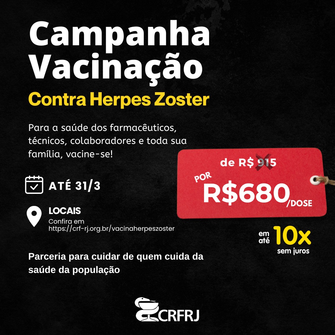 Confira as farmácias participantes em https://crf-rj.org.br//vacinaherpeszoster