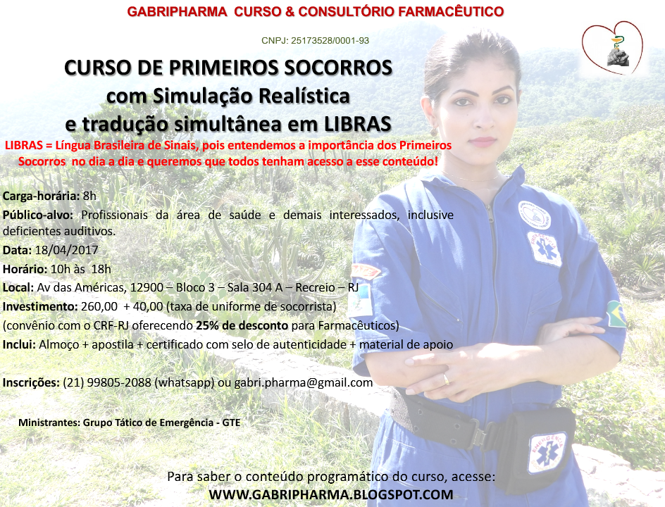 Curso de Primeiros Socorros com Simulação Realística Mais informações em http://gabripharma.blogspot.com.br
