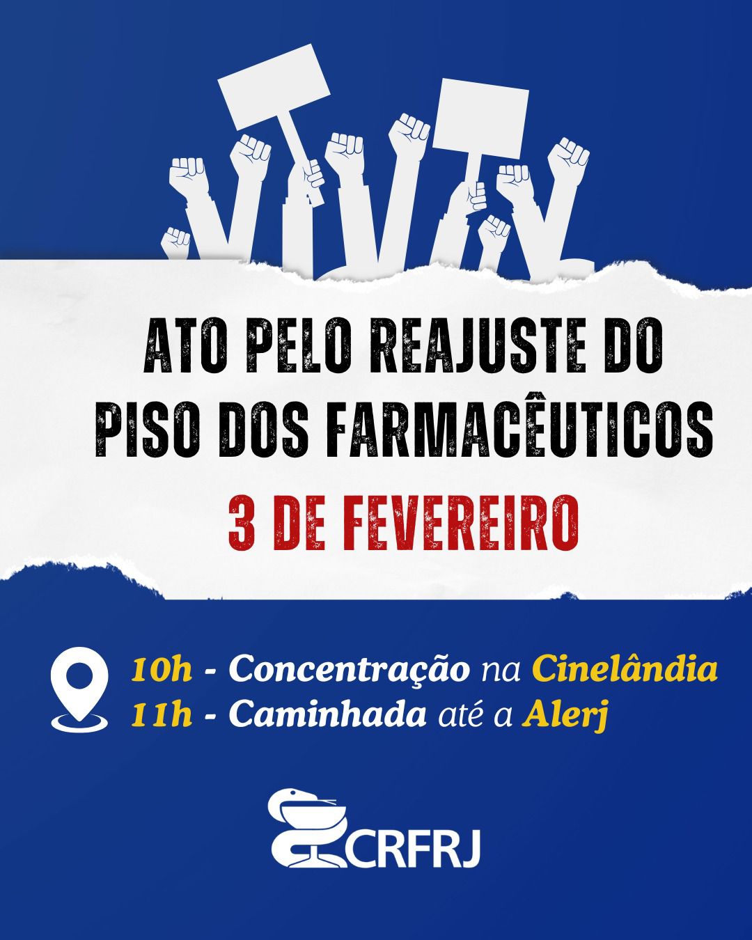 Ato pelo reajuste do piso dos farmacêuticos - 03 de fevereiro de 2026, às 10h, na Cinelândia, Centro do Rio de Janeiro.