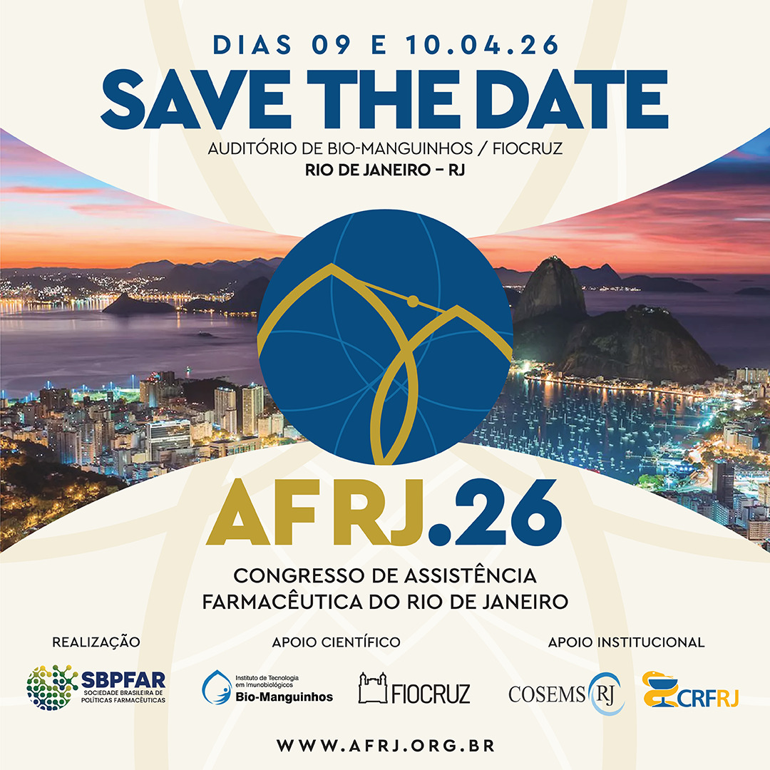 Nos dias 9 e 10 de abril de 2026 a Sociedade Brasileira de Políticas Farmacêuticas - SBPFAR promoverá o Congresso de Assistência Farmacêutica do Rio de Janeiro (AFRJ.16).