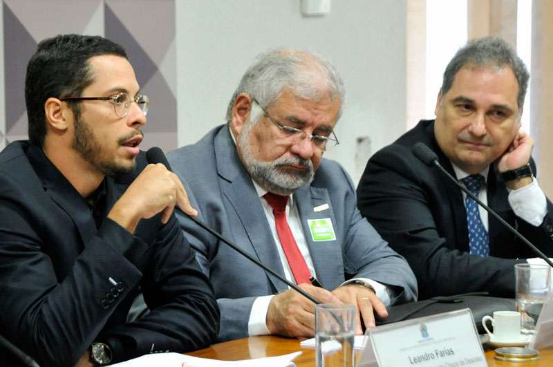 Leandro Farias fala, ao lado de Luiz Carlos Saraiva e Antonio Carlos Abbatepaolo. Foto: Ag. Senado