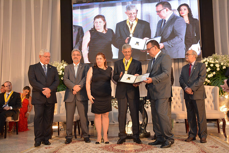 O presidente do CRF, doutor Marcus Athila, entrega a Comenda do Mérito Farmacêutico ao doutor Ivan Craveiro da Silva