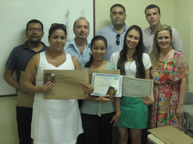 Os novos farmacêuticos com o secretário-geral do CRF-RJ, Doutor José Roberto Lannes Abib, e a coordenadora da seccional, Doutora Sylvia Barreto