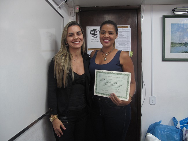 Doutores Talita Barbosa e José Roberto realizando a entrega das carteiras aos novos farmacêuticos
