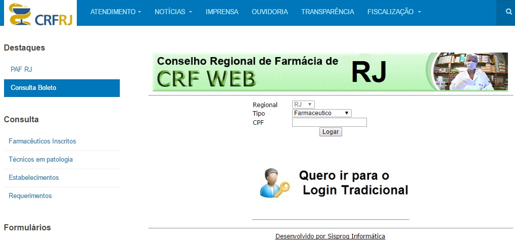 2) Escolha o tipo: Farmacêutico, Técnico, Não farmacêutico ou Firmas.