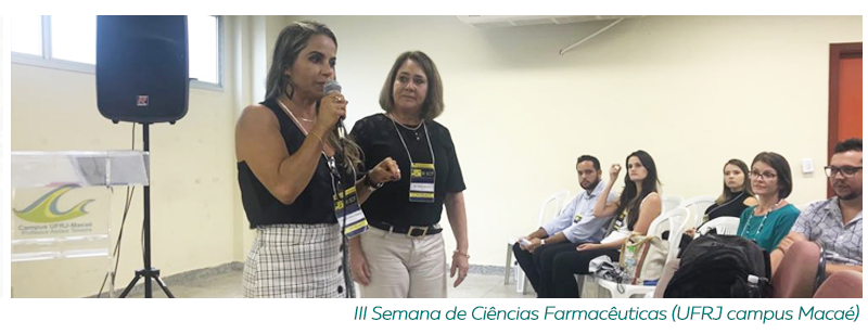 Na manhã do último dia 08.05, a presidente do CRF/RJ, Dra. Tania Mouço, e a vice-presidente do CRF/RJ, Dra. Silvania França, marcaram presença na III Semana de Ciências Farmacêuticas, realizada pela UFRJ – Campus Macaé. Na ocasião, ministraram palestra a respeito das atribuições do Conselho Regional de Farmácia, bem como sobre o papel da fiscalização do exercício profissional no desenvolvimento das atividades.