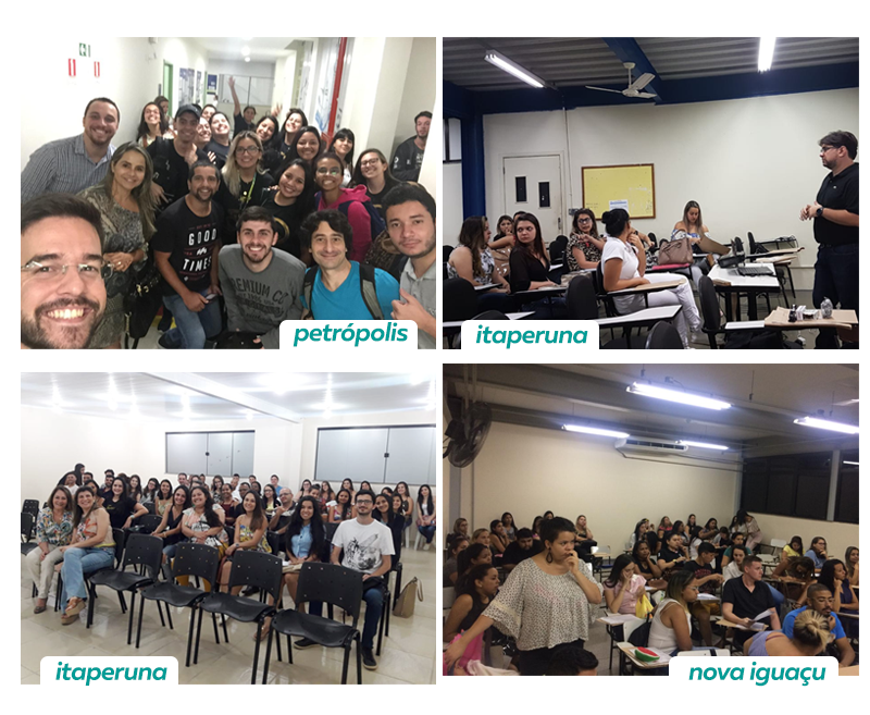 Entre os meses de Novembro e Dezembro, os municípios de Itaperuna (UNIG campus Itaperuna e UNIFSJ), Barra Mansa (UBM), Campos dos Goytacazes (FMC), Duque de Caxias (UNIGRANRIO), Petrópolis (Estácio), Teresópolis (UNIFESO) e Nova Iguaçu (UNIG) receberam membros da Diretoria - Dra. Tania Mouço e Dra. Silvania França, respectivamente Presidente e Vice-Presidente do CRF/RJ - e/ou da Coordenação das Seccionais do CRF/RJ - a exemplo dos Drs. Jonatas Meireles, Victor Hugo Nicácio, Dayse Passos.