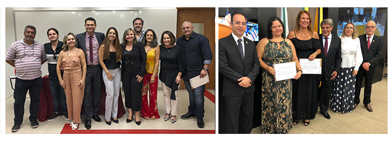 As Doutoras Silvania Maria Carlos França, Maria Eline Matheus e Renata Macedo dos Reis Januário da Silva, e os Doutores Wesley de Marce Rodrigues Barros e Adriano Tancredo de Castro foram diplomados como Conselheiros Regionais para o período de 2020/2023. A cerimônia reiterou o sentimento de contentamento em fazer parte desta nova etapa que será de muitas conquistas para a categoria.Representando os Conselheiros Regionais, a Dra. Eline Matheus fala sobre a satisfação em dar continuidade a esta jornada junto ao Conselho, “Somos uma equipe integrada e que quer acolher os farmacêuticos, mostrando apoio em todos os momentos”, afirma.