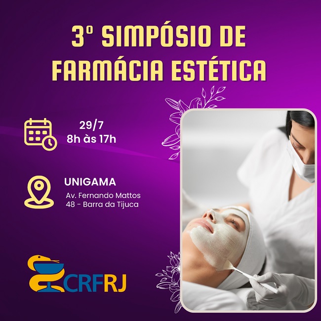 O CRF-RJ, por meio de seu Grupo Técnico de Estética, tem o prazer de anunciar o aguardado 3º Simpósio de Farmácia Estética do CRF-RJ. O evento será realizado no dia 29 de julho de 2023, das 8h às 17h, no campus da UNIGAMA, localizado na Barra da Tijuca.