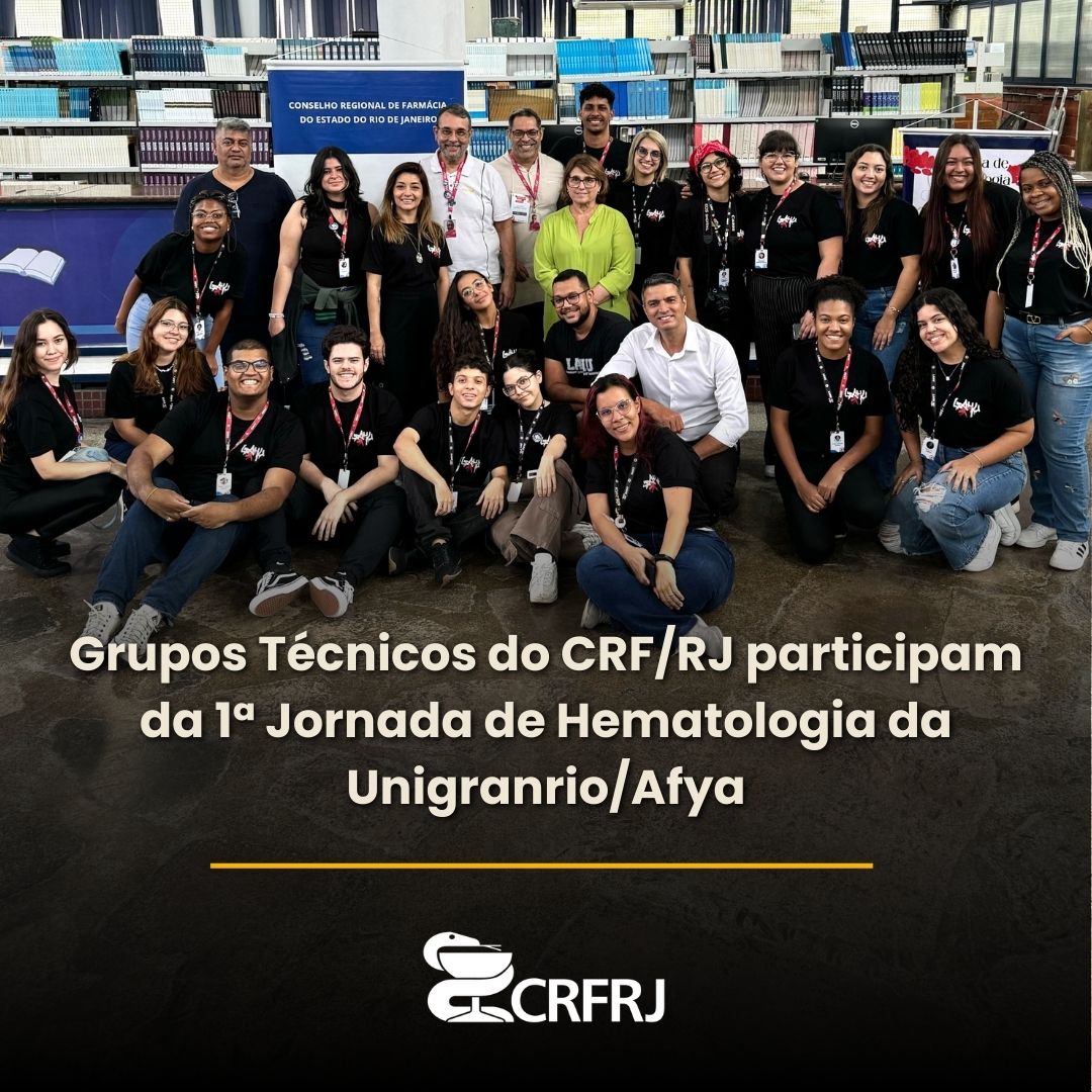 A Diretoria do CRF/RJ agradece o convite e a receptividade aos membros da LAHU, orientador da Liga Acadêmica e professor do curso de Farmácia, Dr. Fábio de Moura Câmara, do coordenador de Farmácia da Unigranrio/Afya, Dr. Lásaro Stephanelli, e do preceptor do curso de Farmácia, Dr. Renato Melo, parabeniza pela organização de eventos que valorizam a formação dos futuros profissionais de saúde.