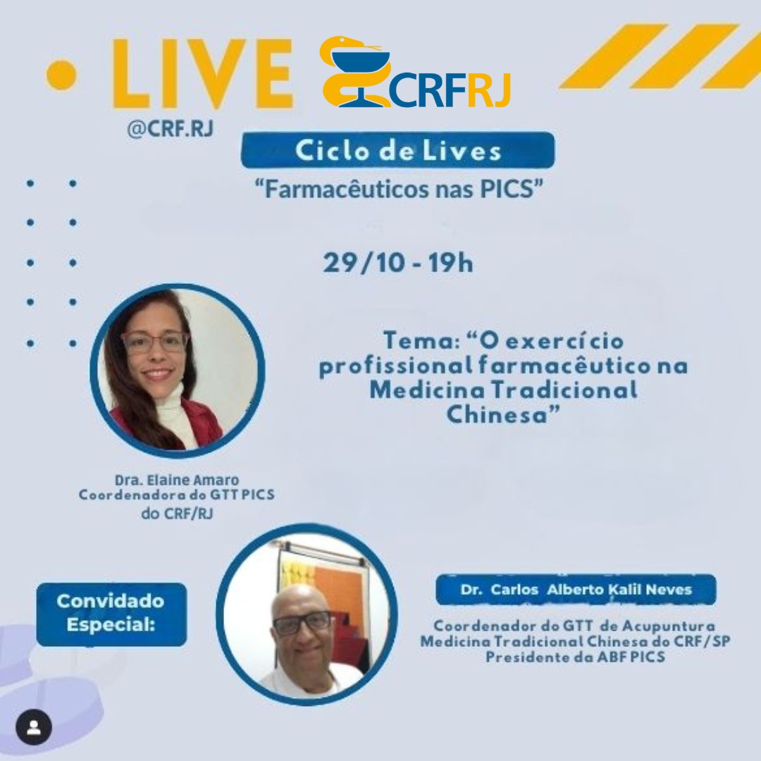 Live Imperdível HOJE, às 19h, no Instagram do CRF/RJ: