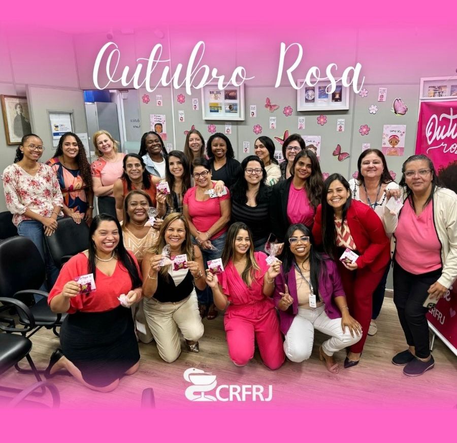 Ontem (31/10), a Presidente em exercício do CRF/RJ, Dra. Luzimar Gualter, a Diretora Tesoureira do CRF/RJ, Dra. Alexandra Gomes, a Assessora da Diretoria do CRF/RJ, Dra. Bianca Nascimento, e a coordenadora do GT Mulher Farmacêutica do CRF/RJ, Dra. Rozane Nascimento, promoveram o evento de conscientização do Outubro Rosa, voltado ao diagnóstico precoce do câncer de mama, junto às colaboradoras e estagiárias, na sede do Conselho.