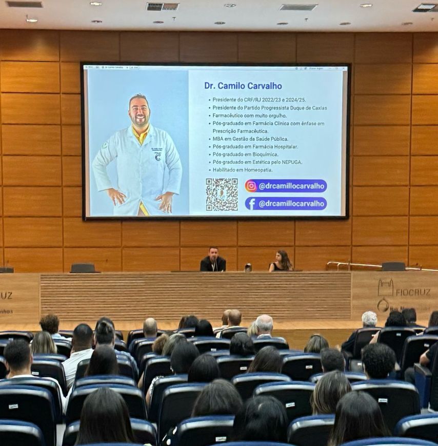 O presidente do Conselho Regional de Farmácia do Rio de Janeiro (CRF/RJ), Dr. Camilo Carvalho, ministrou uma palestra durante o I Congresso de Assistência Farmacêutica do Rio de Janeiro, realizado nesta sexta-feira no auditório da Bio-Manguinhos/Fiocruz. O evento teve como tema central “Avanços e Perspectivas da Assistência Farmacêutica do Estado do Rio de Janeiro”.