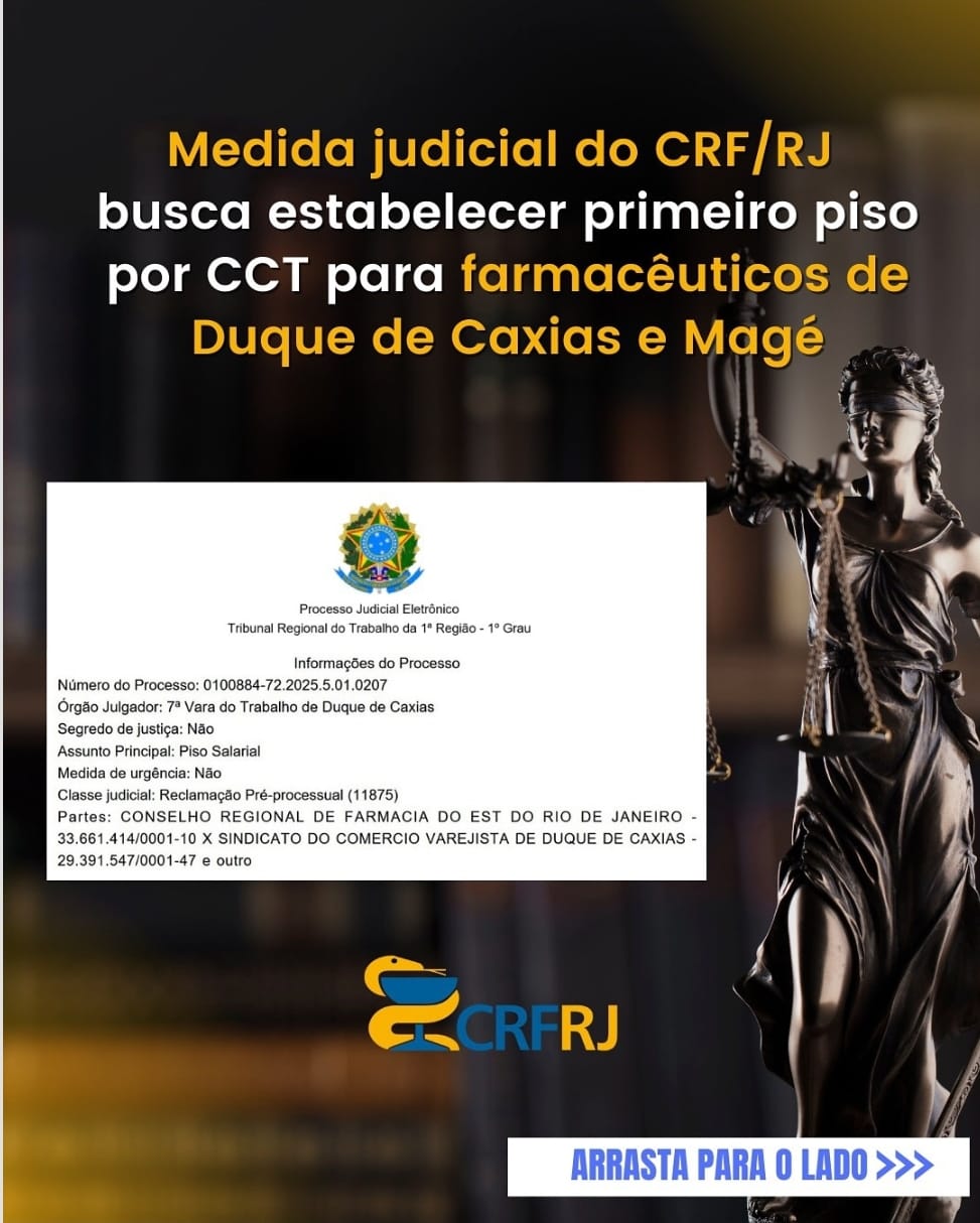Atualmente, não há registro no sistema do Ministério do Trabalho de qualquer Convenção Coletiva de Trabalho (CCT) entre o Sinfaerj e o sindicato patronal de Duque de Caxias. Com essa ação, o CRF/RJ busca estabelecer, pela primeira vez, um piso salarial que assegure a valorização profissional dos farmacêuticos da região.