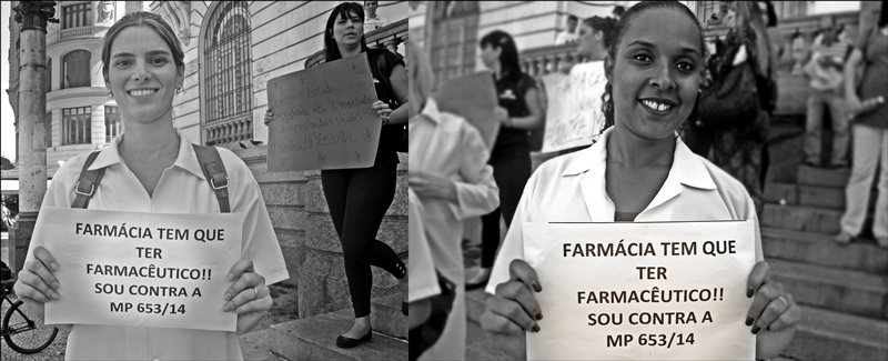 No mesmo espaço da manifestação, duas outras farmacêuticas, Angélica Candido, 28 anos, e Paola Mendes, 33, compartilharam com a posição da estudante Monique. Para elas, o farmacêutico exerce função precípua para a melhoria da Saúde Pública e tem ele a confiança maior dos pacientes, maior até que a confiança no próprio médico que está tratando a doença.